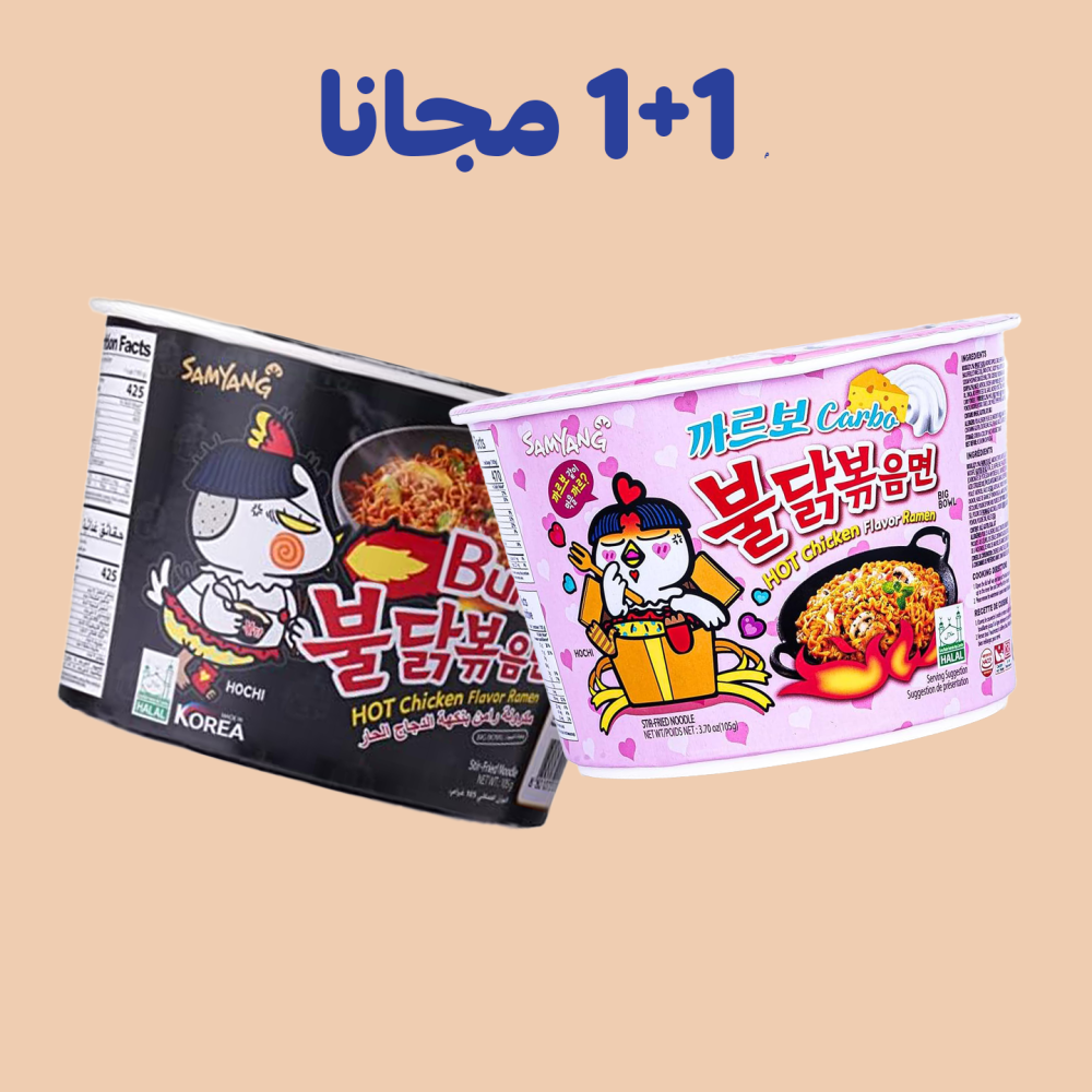 عرض 1+ 1 مجانا ساميانج بولداك هوتشي كوب نودلز الرامن كورية بنكهة الدجاج الحار بحجم 105 جرام مستورد كوريا Samyang Hot Chicken Flavor Ramen nudler 105g