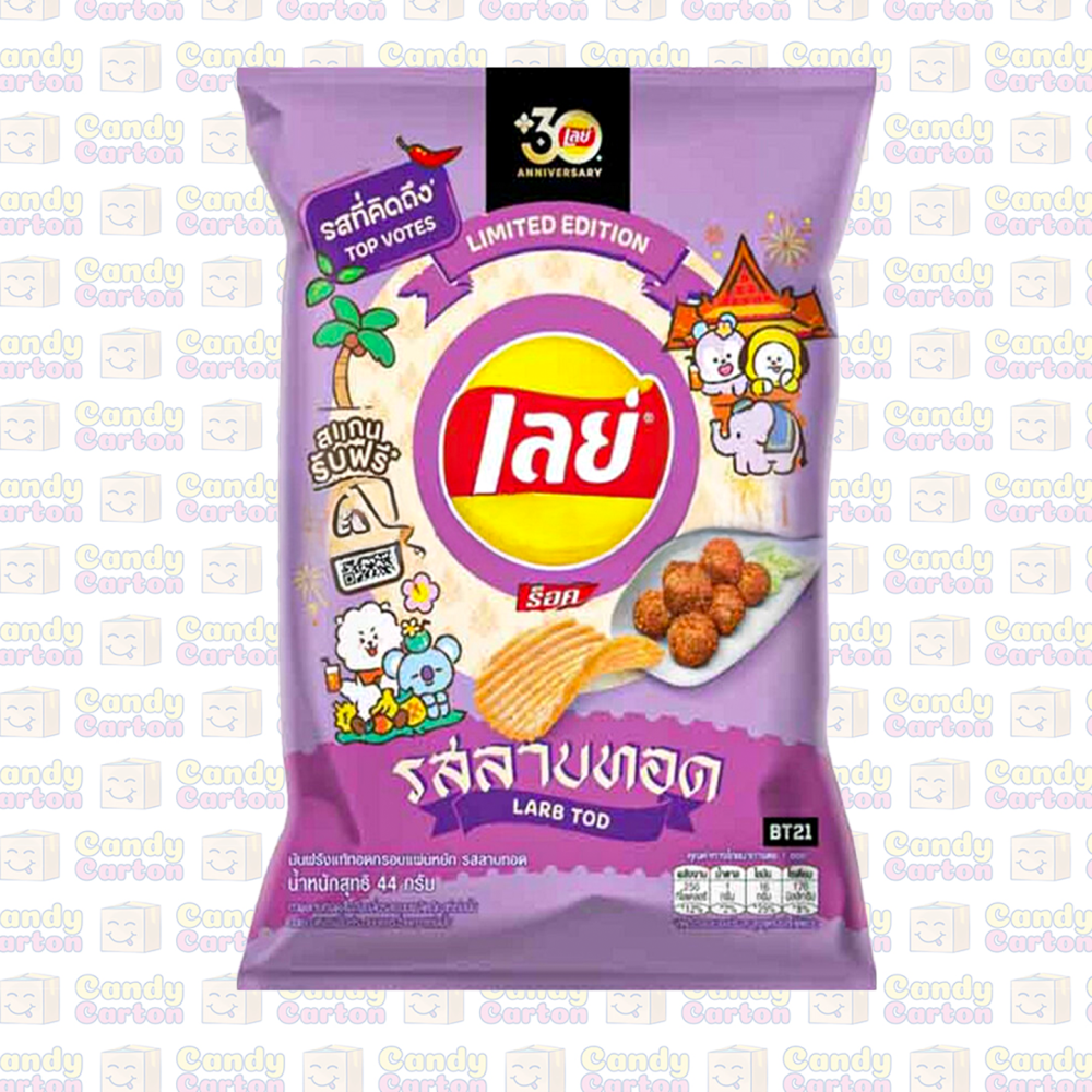ليز رقائق بطاطس بنكهة طعم اللارب المقلي كرات اللحم المتبلة والمقلية 44 جرام مستورد تايلند Lays Larb Tod Flavor Potato Chips 44g