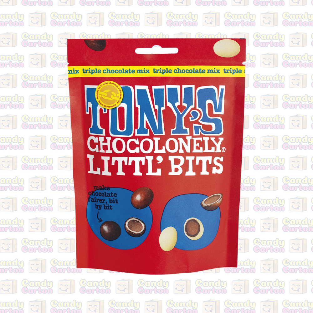 توني شوكولونلي ليتل بيتس مزيج الشوكولاتة الثلاثية شوكولاتة حليب و بيضاء وداكنة 100 جرام مستورد بلجيكا Tonys Chocolonely Littl Bits Triple Chocolate Mix 100G