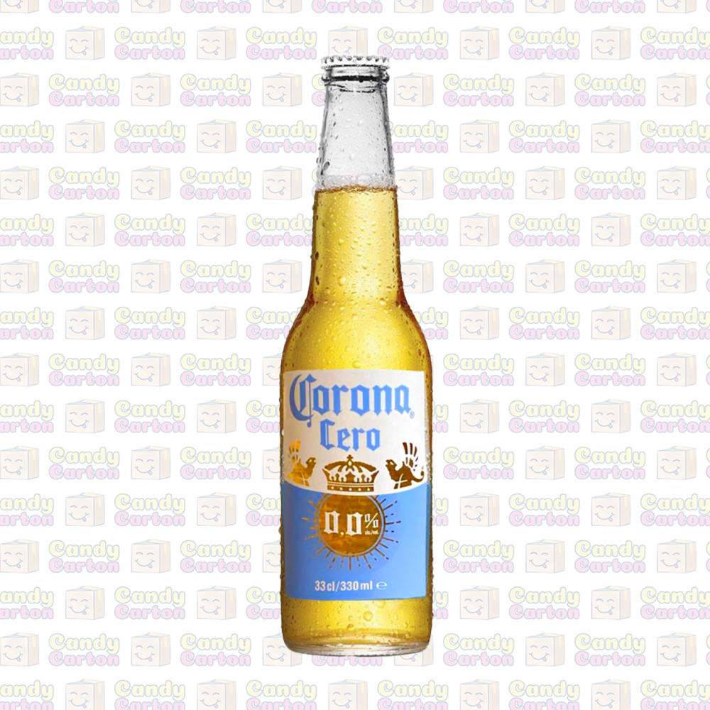 - الملصقات: تحمل الزجاجة شعار "كورونا سيرو" بألوان زرقاء وبيضاء جذابة، مع معلومات واضحة عن محتوى الكحول 0.0%، مما يعكس الشفافية والجودة.
