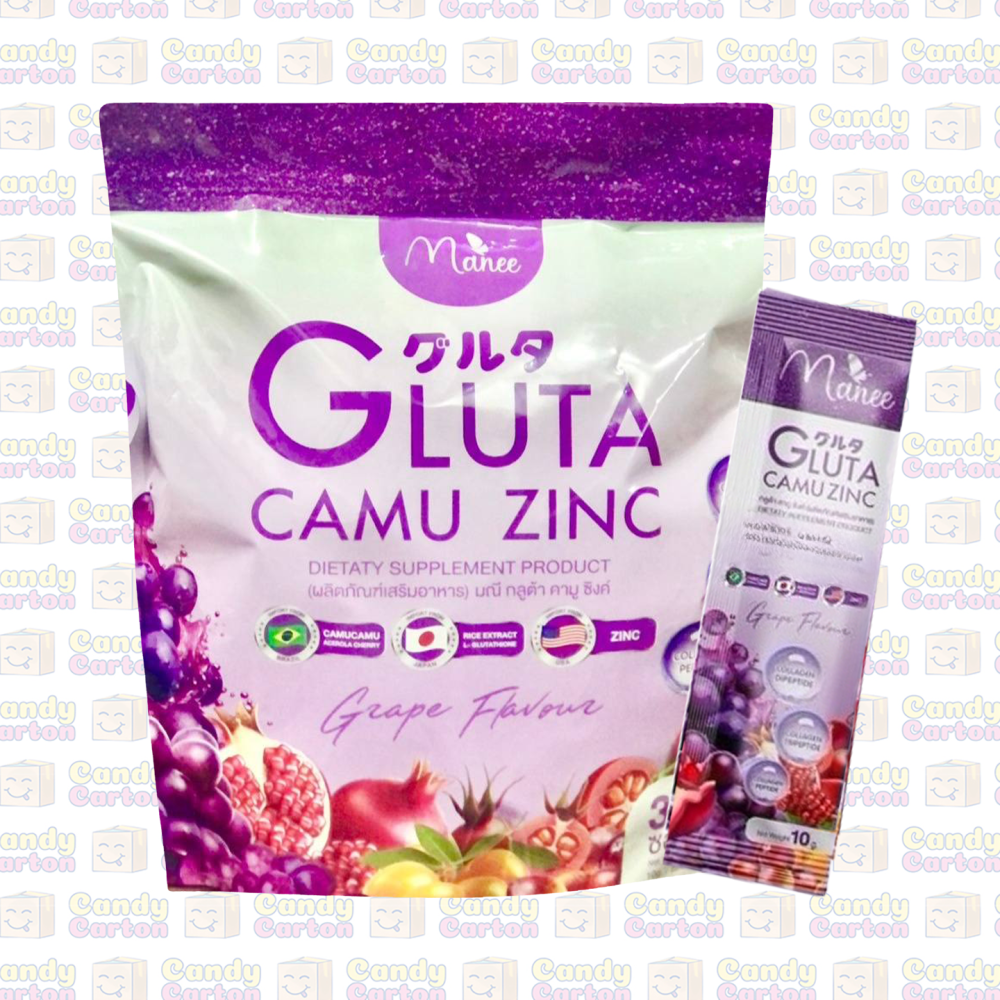 Gluta Camu Zinc for slimming from Mani, a food supplement containing grape and pomegranate extract, 30 sachets, each sachet is 300g, imported from Thailand