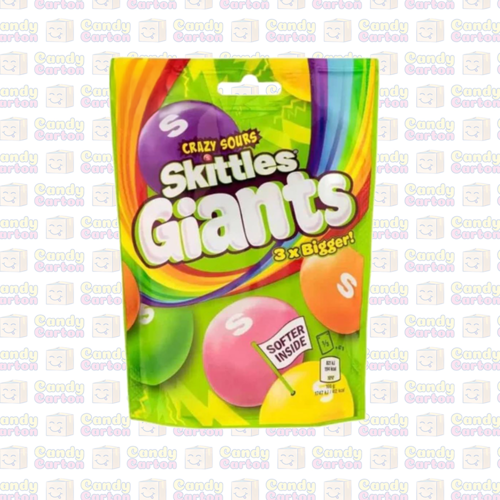 Enjoy the sweetness of Skittles Crazy Sour , a fruity, sour treat! Giants bag, 132g, triple the size! This product features eye-catching, bright colors ranging from bright green, bright yellow, and bright pink, creating an amazing visual experience.
